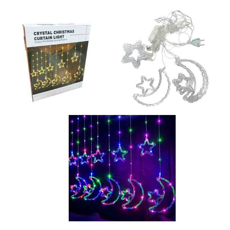 Κουρτίνα Φωτάκια Χριστουγέννων 3M Πολύχρωμα με Αστέρια & Φεγγάρια