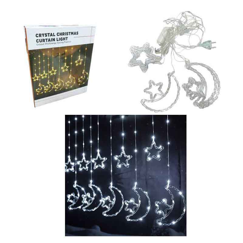 Κουρτίνα Φωτάκια Χριστουγέννων 3M Ψυχρό Φως με Αστέρια & Φεγγάρια