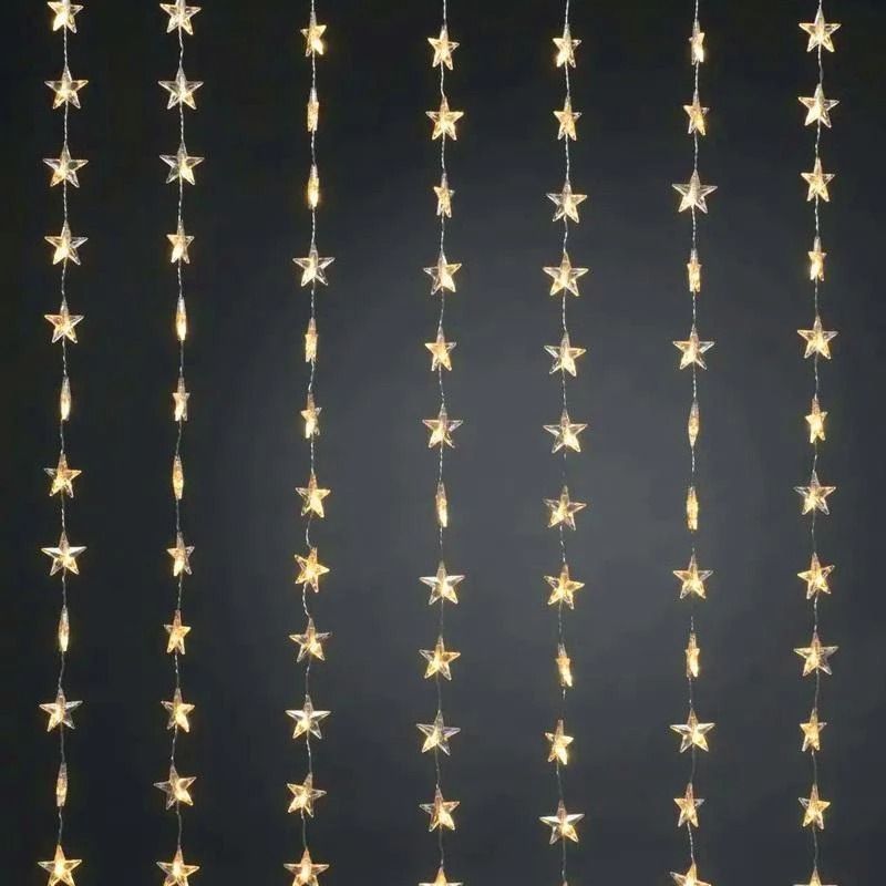 Λαμπάκια κουρτίνα LED με αστεράκια θερμό χρώμα, μήκους 3m και ύψους 1m με 80 λαμπάκια, ιδανικά για εσωτερική χριστουγεννιάτικη διακόσμηση.