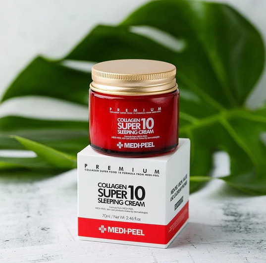 Η Medi-Peel Collagen Super10 Sleeping Cream 70ml είναι μια προηγμένη αντιγηραντική κρέμα νυκτός με υψηλή συγκέντρωση κολλαγόνου (10.000 ppm) και σύμπλεγμα 10 υπερτροφών εκχυλισμάτων.